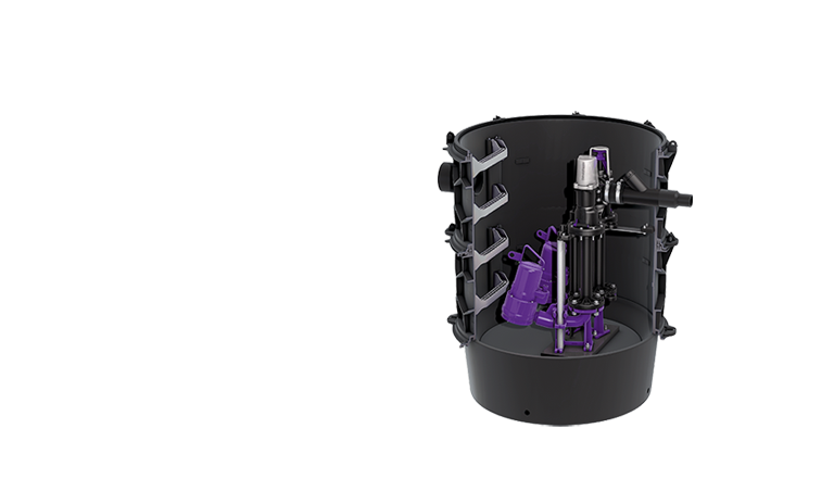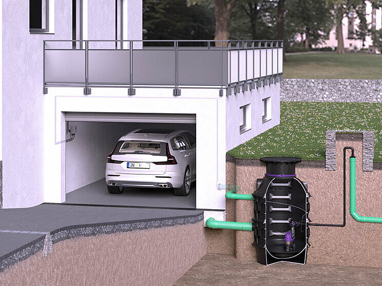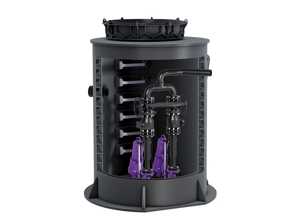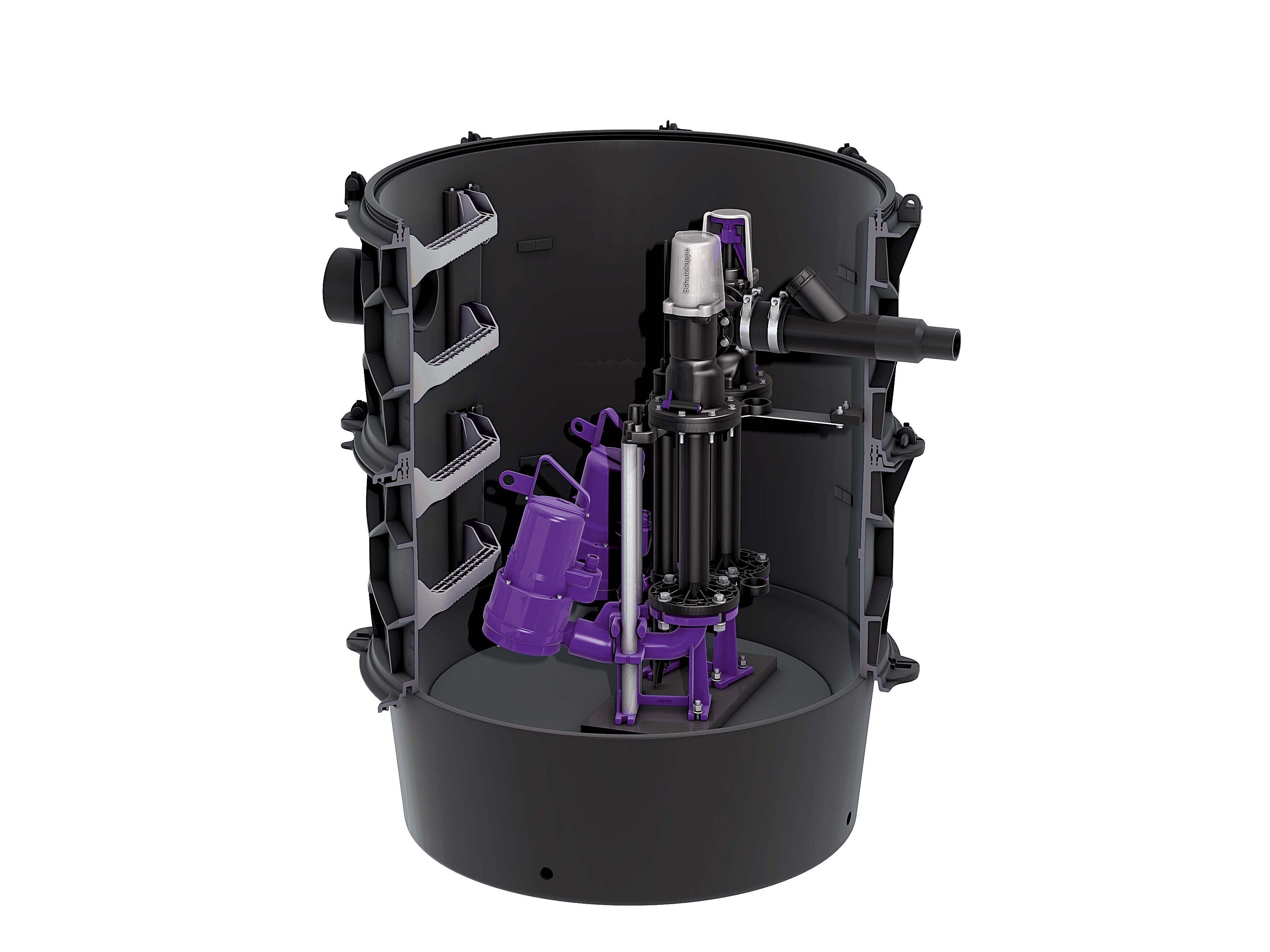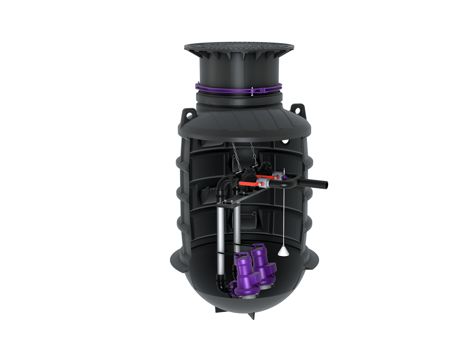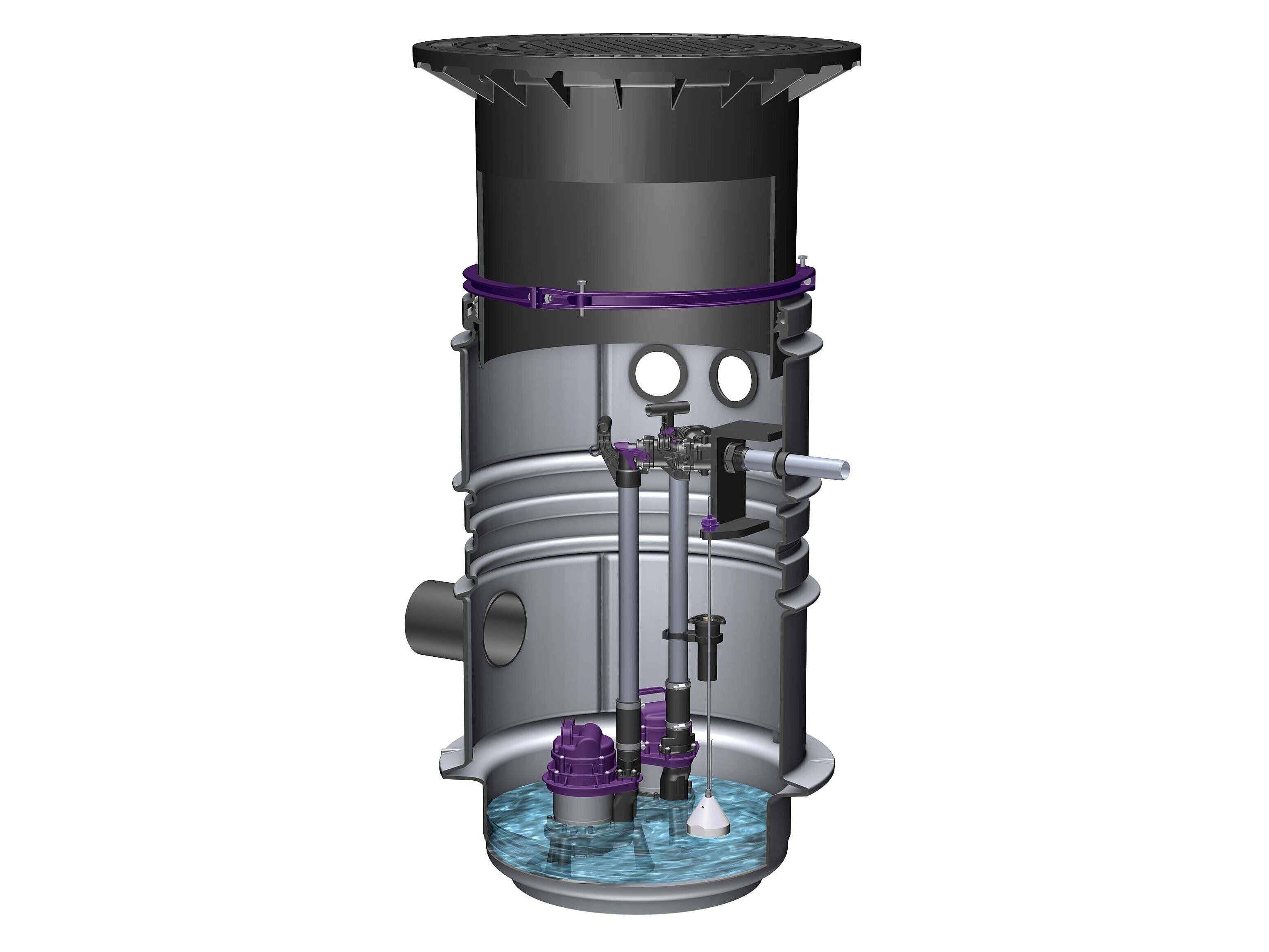 Si les éléments de drainage se trouvent en dessous du niveau des plus hautes eaux, les eaux usées doivent être relevées au-dessus du niveau des plus hautes eaux. Contrairement aux postes de relevage hybrides, les stations de relevage présentent l'avantage d'être installées à l'extérieur du bâtiment, ce qui offre de nombreux avantages.