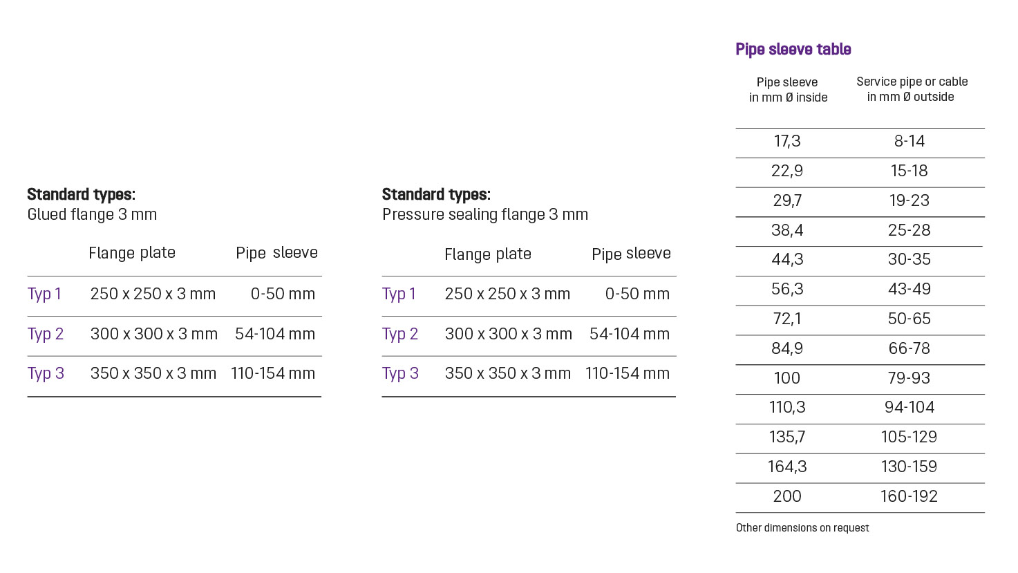 Vous pouvez choisir entre des passages de tuyaux ronds ou carrés, qui peuvent être combinés sur une plaque de bride.